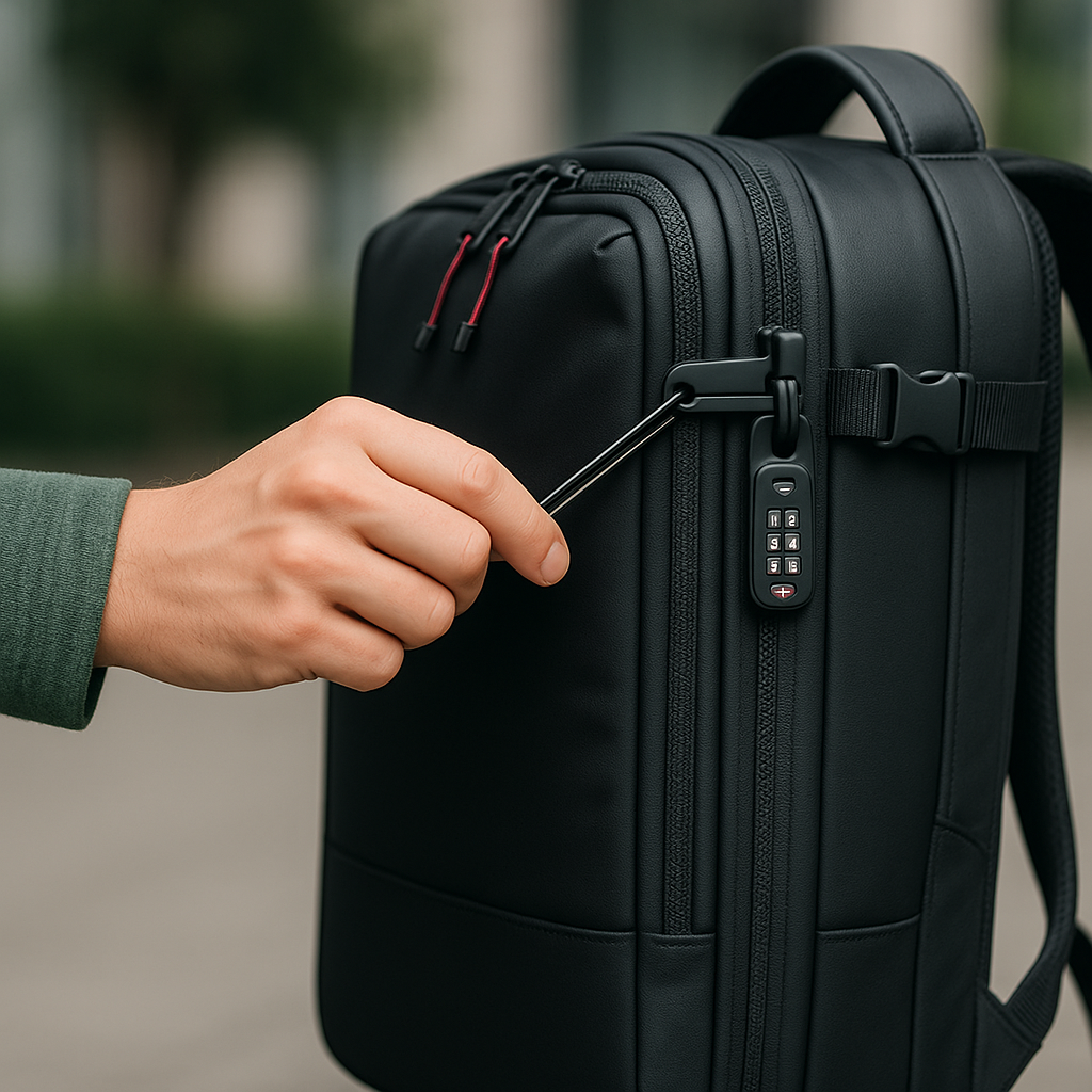 La Odys CompactAir est équipée d’un système de fermeture TSA (recommandé pour voyager en avion) et de poches cachées antivol pour protéger votre passeport, vos cartes ou votre argent liquide.