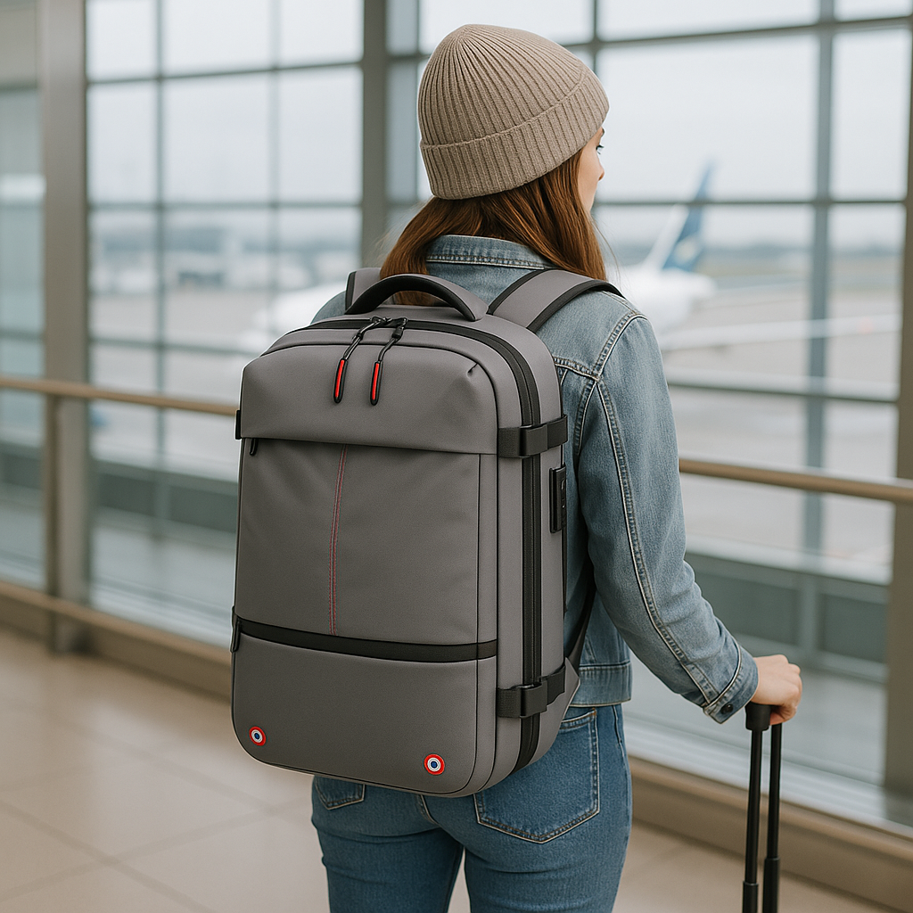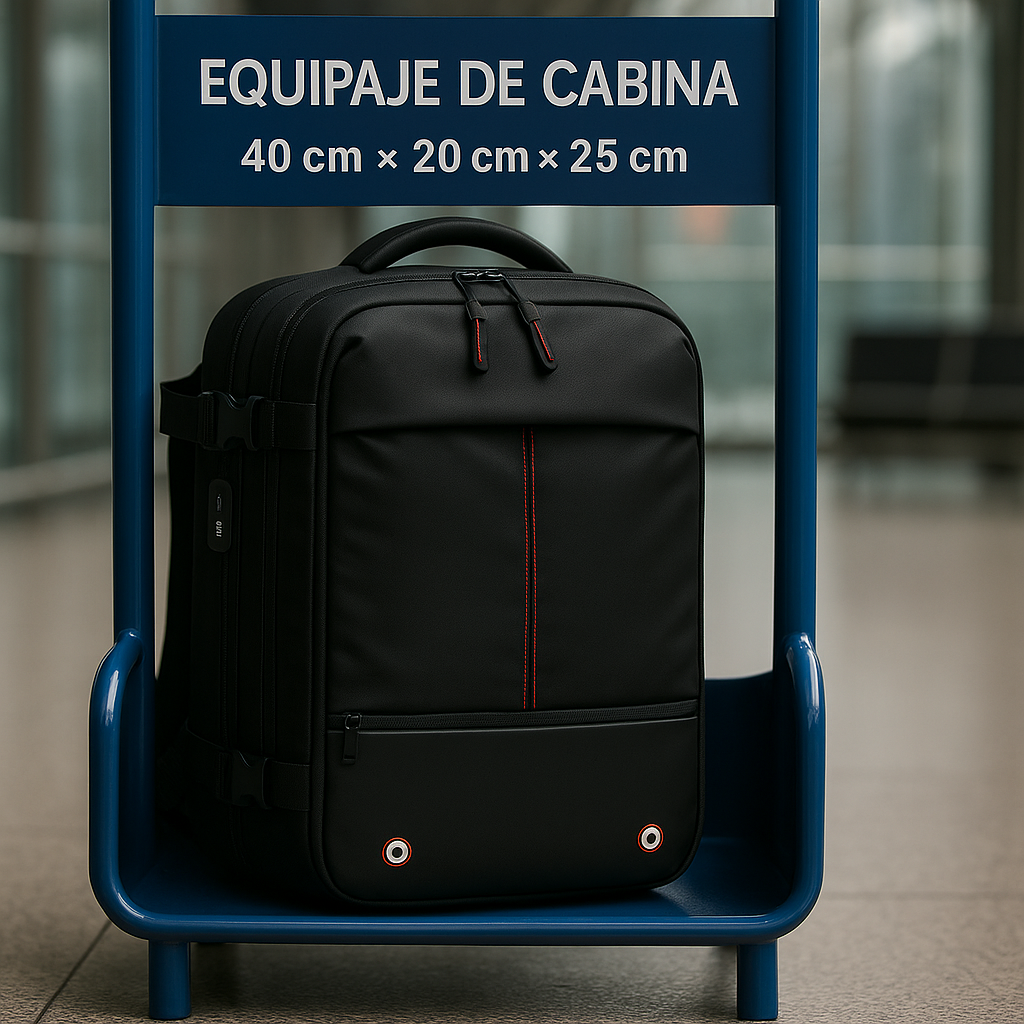 Notre sac à dos est conforme aux dimensions des bagages cabine (40 x 20 x 25 cm), ce qui lui permet de se glisser facilement dans la cabine de tout type d'avion. Il est idéal pour voyager confortablement, sans se soucier des restrictions de taille.